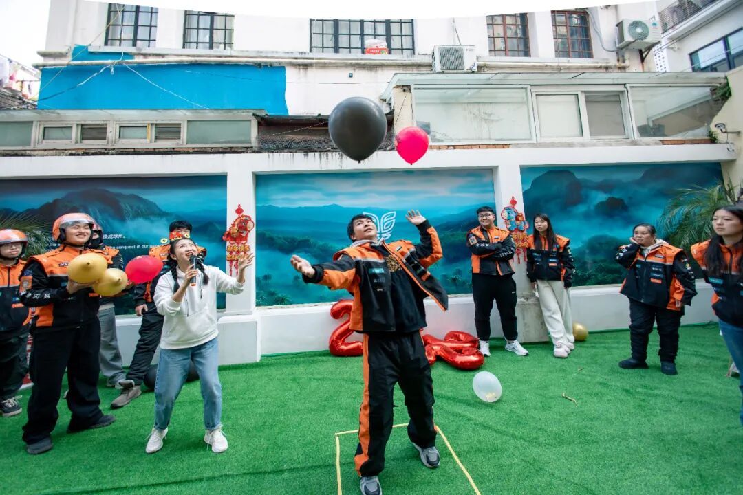 随着动感的音乐,平日里风风火火的“奔波者”化身成了活力满满的“舞者”;随着“三、二、一,抱团!”的一声口令,他们闻声而动,笑着、喊着抱成一团,热闹的呼喊声驱散了冬日的寒意。