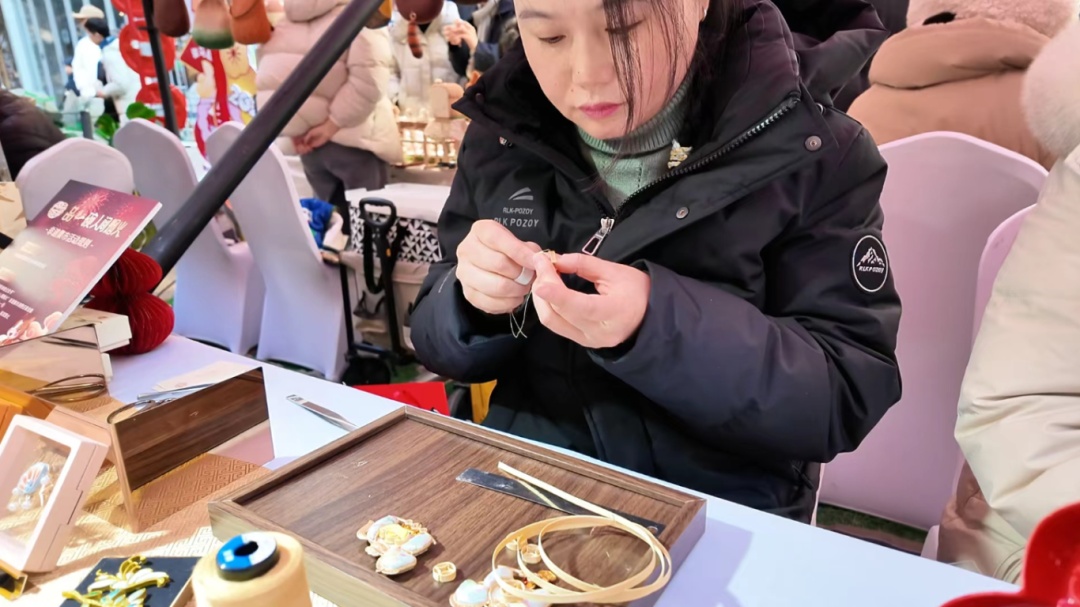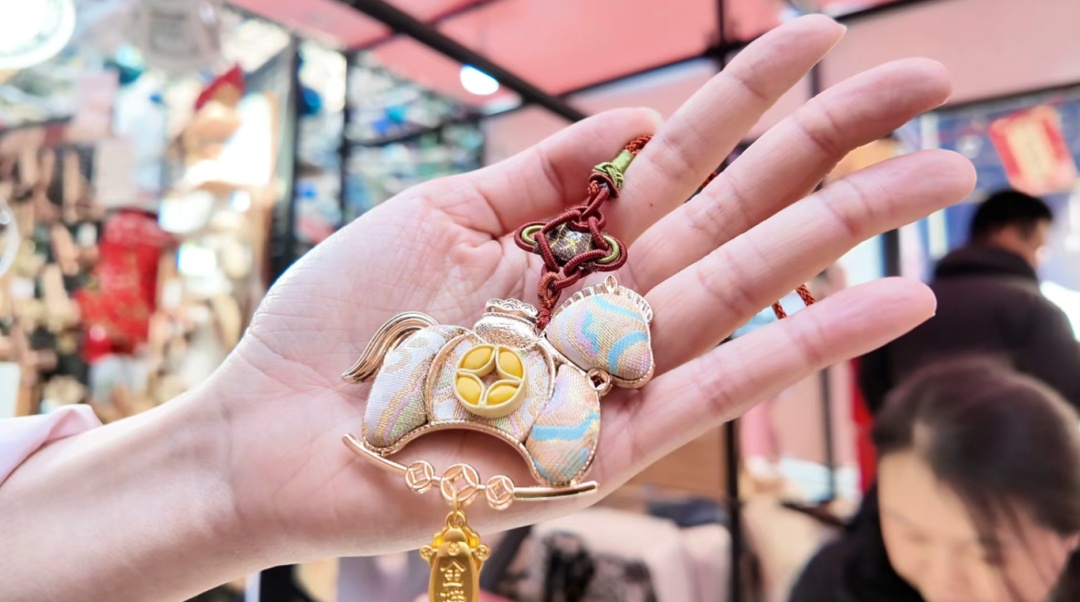 江师傅拿起一枚挂件介绍道,每一枚小马挂件都由师傅单独制作,寓意着马年“马到成功、平安顺遂”。“挂件可搭配旗袍领口、衣襟,也能作为钥匙扣、包挂使用,兼顾美观与实用性,就是想让非遗技艺融入日常,让老手艺多了份年轻活力,这也是传承的意义所在。”