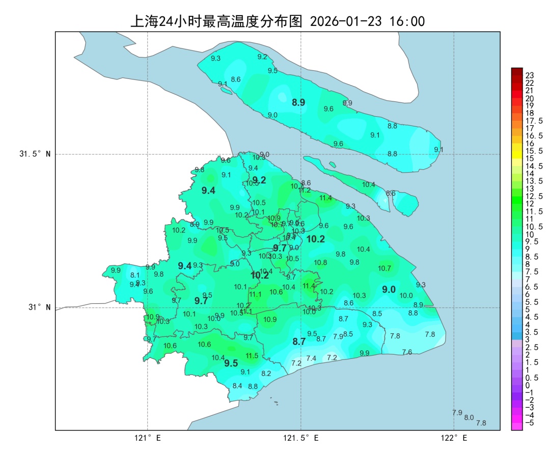 全市最高气温普遍来到8~11℃之间