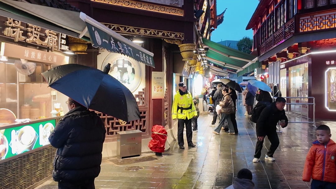 尽管亮灯首日恰逢雨天,现场客流未出现大幅增长,但黄浦公安的安保工作却丝毫没有松懈。现场各个位置都布置了公安、平安志愿者等安保力量,九曲桥上不断有广播提示游客不要长时间停留,桥边的蛇形通道也已设置完成,一旦遇上大客流可立即启用。这些细致入微的安保措施,让市民游客观灯时倍感安心。