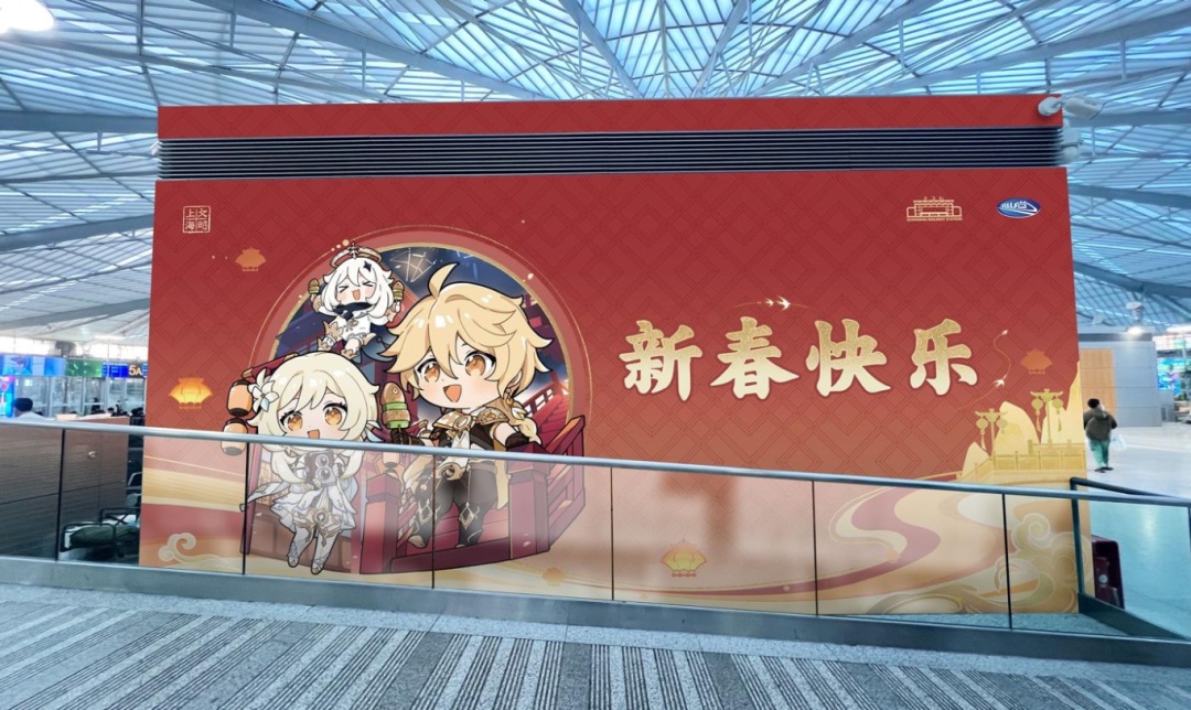 上海南站、上海虹桥站在上海市精神文明建设办公室的支持下,以二次元元素融合中华传统文化,布置春运主题打卡点、装饰墙、灯箱及立柱,营造浓厚春节文化氛围,打造全国首个高铁“痛站”
