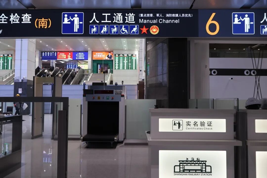 上海站南进站口改造工程竣工投用,进站及安检通道数量提升70%,新增7个“一窗通办”人工窗口与站外遗失物品领取点