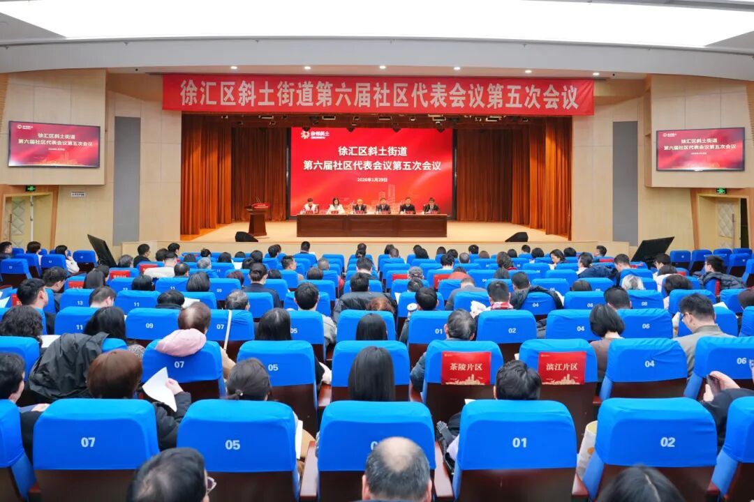 1月29日下午,徐汇区斜土街道第六届社区代表会议第五次会议,在斜土街道党群服务中心召开。徐汇区政协副主席施斌等领导出席会议。斜土街道领导班子成员、基层站所、居民区负责人,以及驻区共建单位、重点企业、律所和商业综合体、中小学校、医疗和养老机构、社会组织等各界代表参加会议。