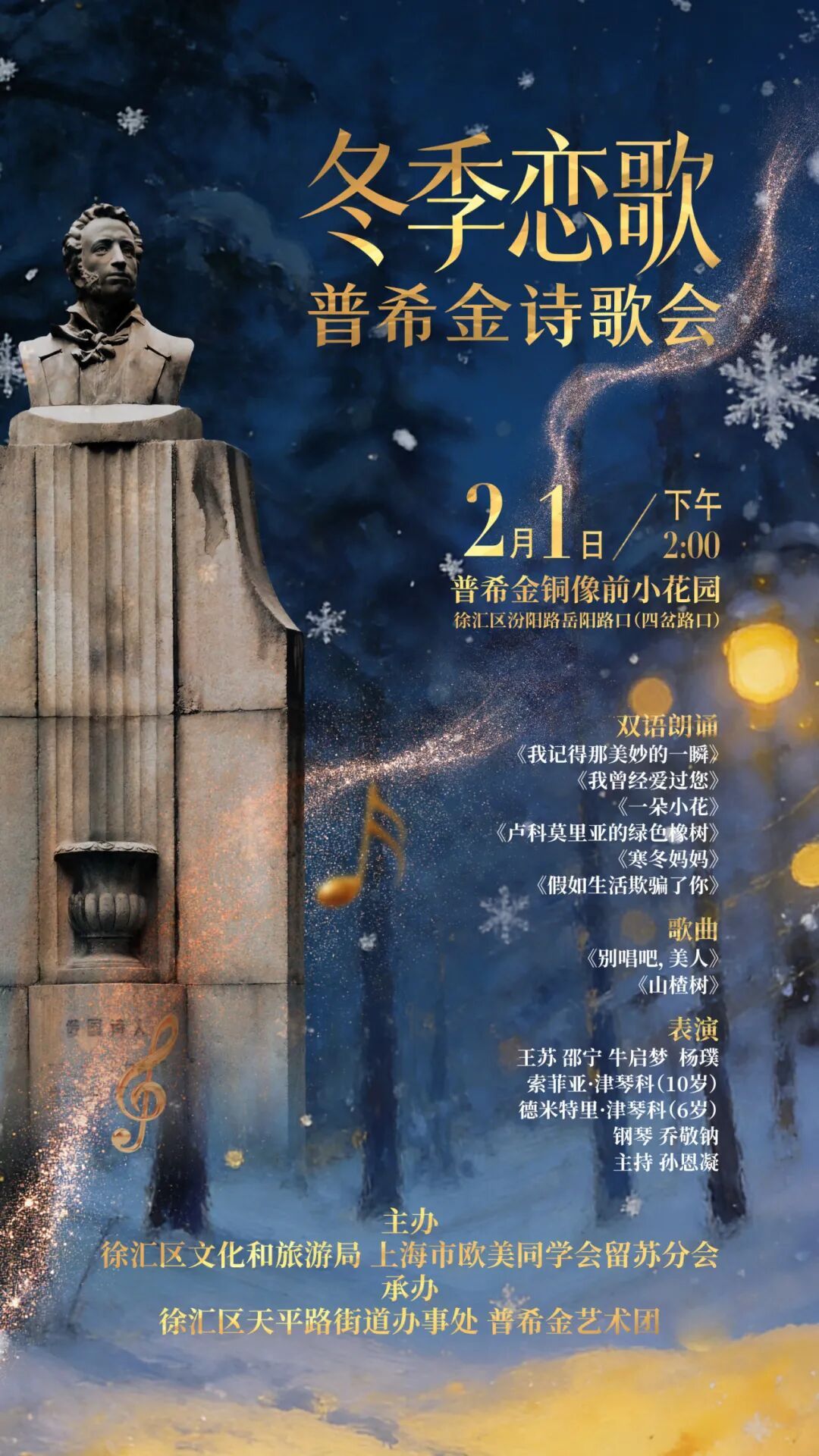 2月1日14:00,普希金铜像前小花园,一场跨越时空的诗歌盛会将正式开启。