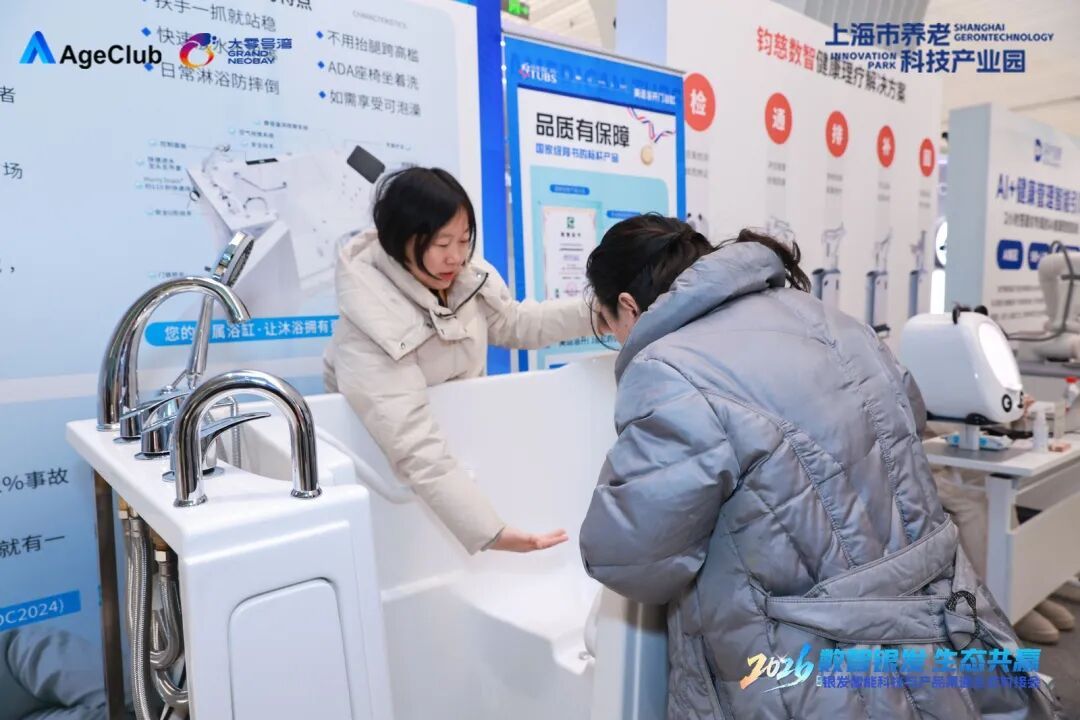 “坐着淋浴防止摔倒,还可直接开门走进去,这个新式浴缸设计太贴心了!”1月29日,上海市养老科技产业园内人头攒动,来自上海某社区的养老机构负责人张女士俯身体验一款步入式开门浴缸时,脸上满是赞许之情。 当天,“数智银发,生态共赢——2026银发智能科技与产品渠道生态对接会”在此举行,这场集场景体验、政策解读、产业合作于一体的行业盛会,依托上海市养老科技产业园的平台优势与场景资源,旨在打通“创新链、产业链、资金链”,构建协同共赢的产业生态。100余家来自产业链上下游企业、投资机构、专家学者及政府代表齐聚一堂,展开涵盖供需对接、资本合作、场景落地的综合性交流,为银发产业发展注入强劲动力。