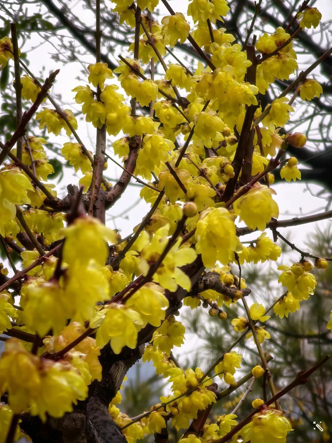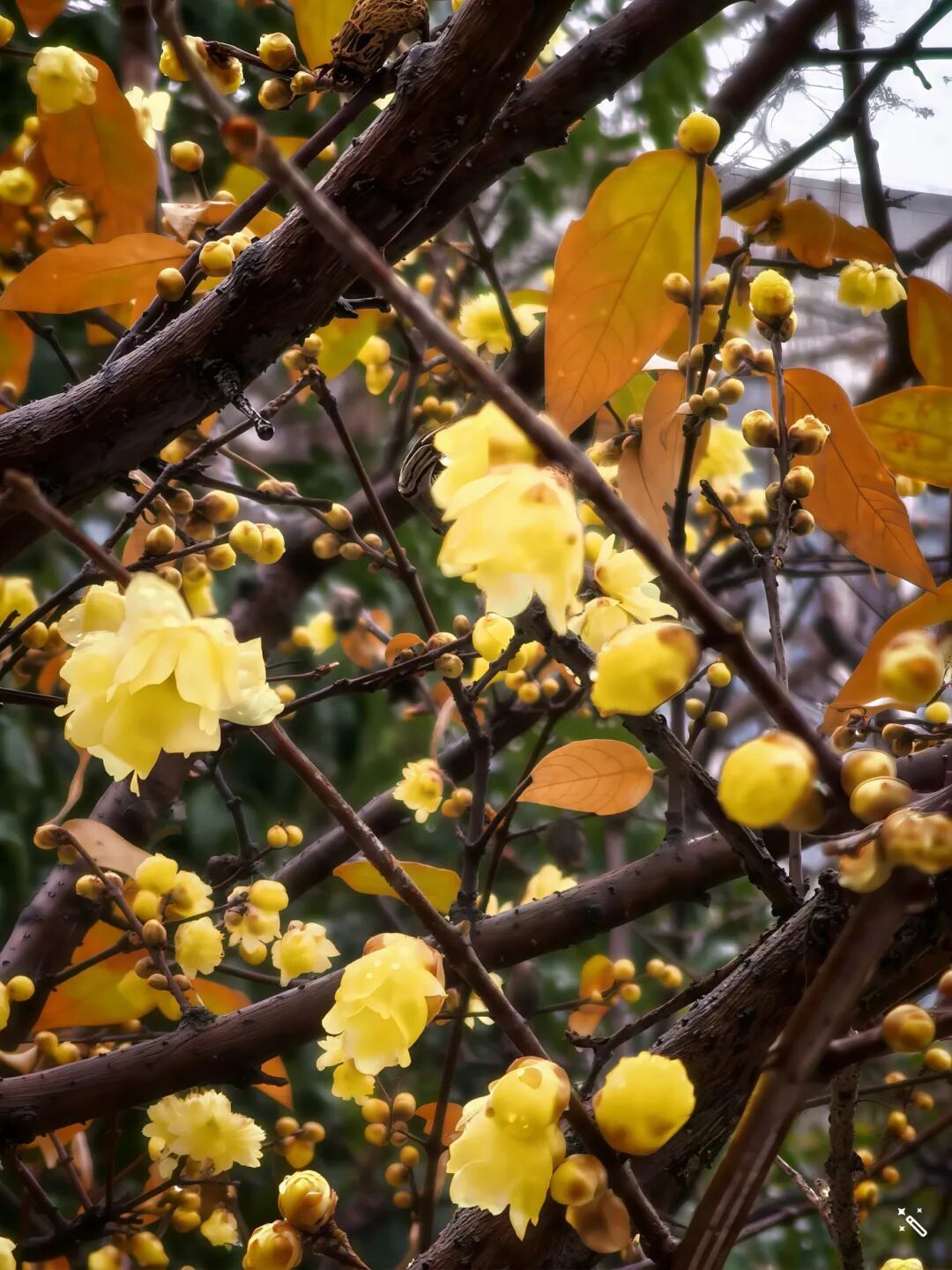 探访真如公园时,一场细雨不期而至,反倒解锁了蜡梅的烟雨江南之美。作为上海唯一的蜡梅主题公园,园内蜡梅已缀满枝头,是普陀蜡梅赏玩的绝佳去处。