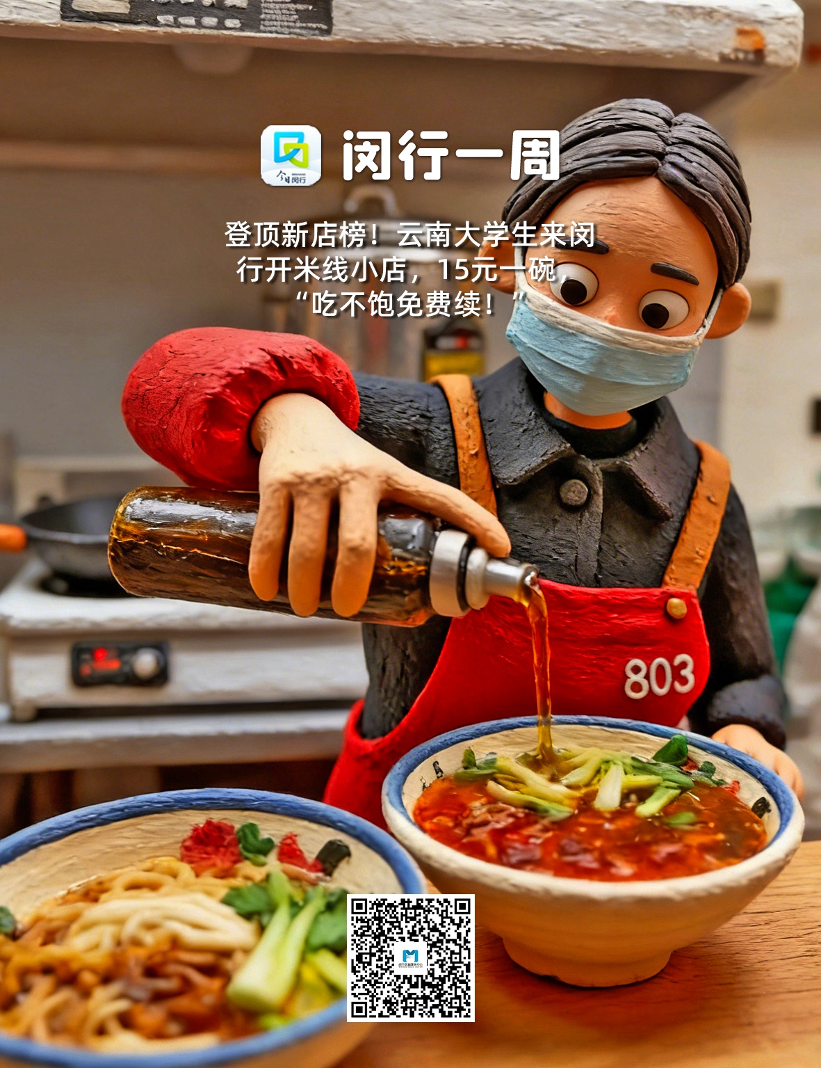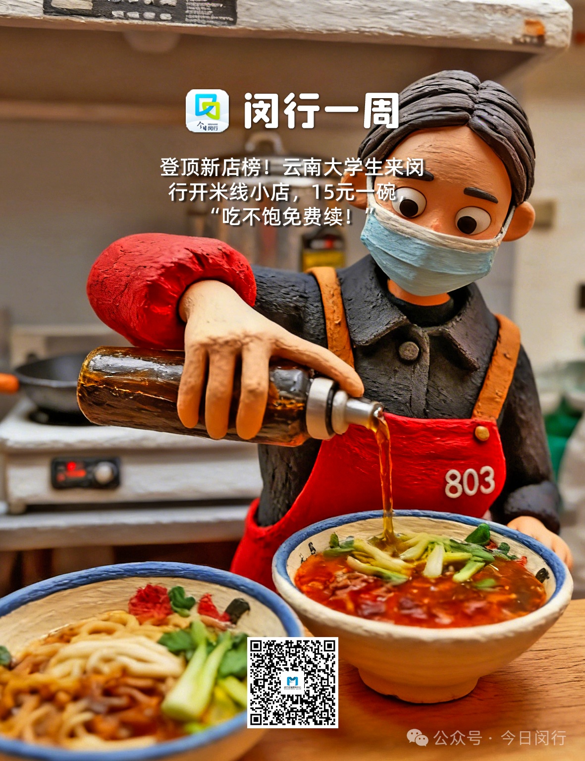 图3:登顶新店榜!云南大学生来闵行开米线小店,15元一碗,“吃不饱免费续!”