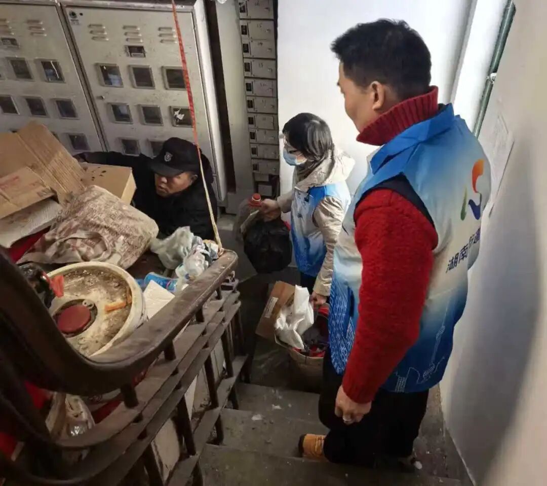 针对楼道堆物、消防通道堵塞等隐患,湖南街道依托党建引领“多格合一民情快办”机制,以联情联动为抓手,组建“六人小组”联合攻坚专班,逐楼逐户开展全域整治。同步构建“片区网格长—居委—环卫网格”联动机制,实现大件垃圾“发现—上报—调度—清运”全流程闭环管理,从源头遏制楼道堆物反弹。