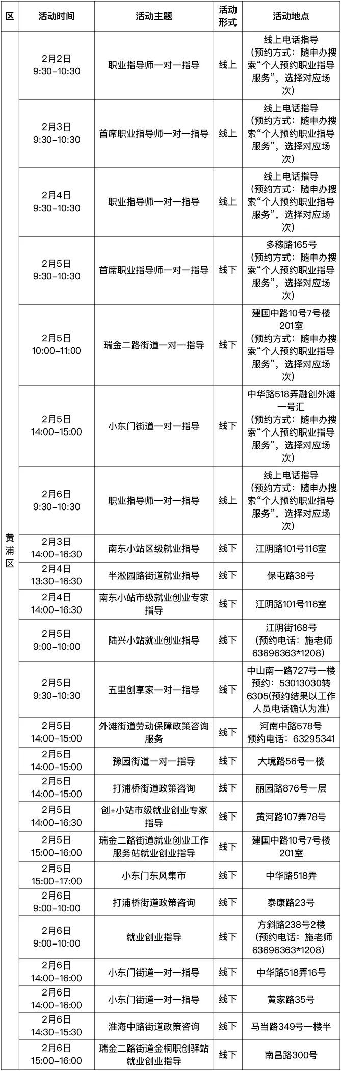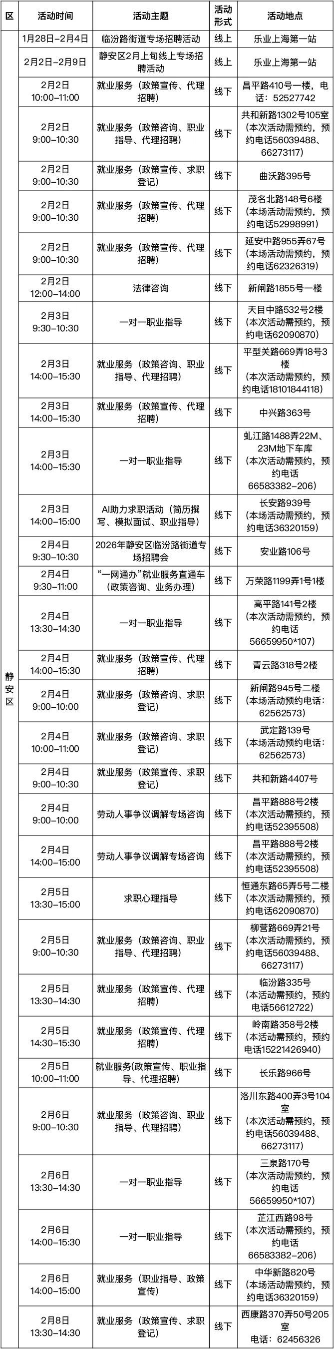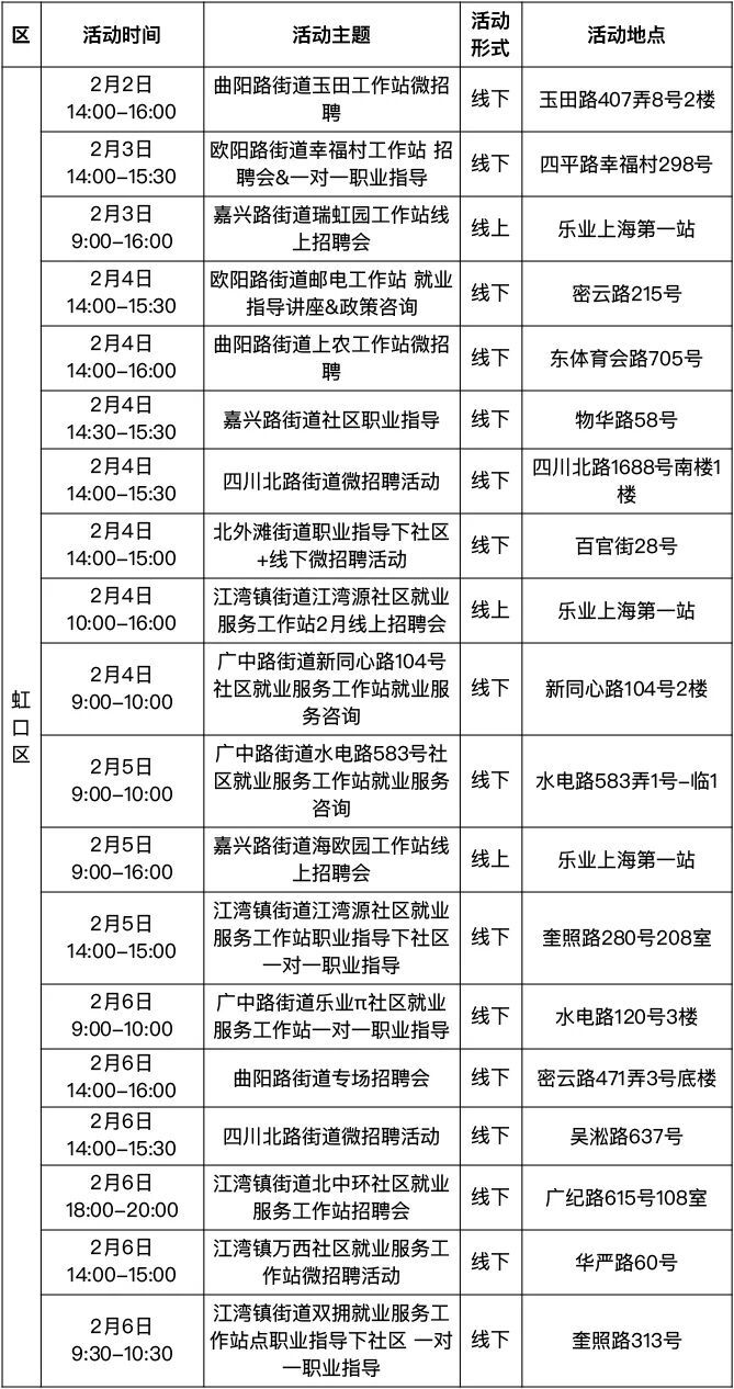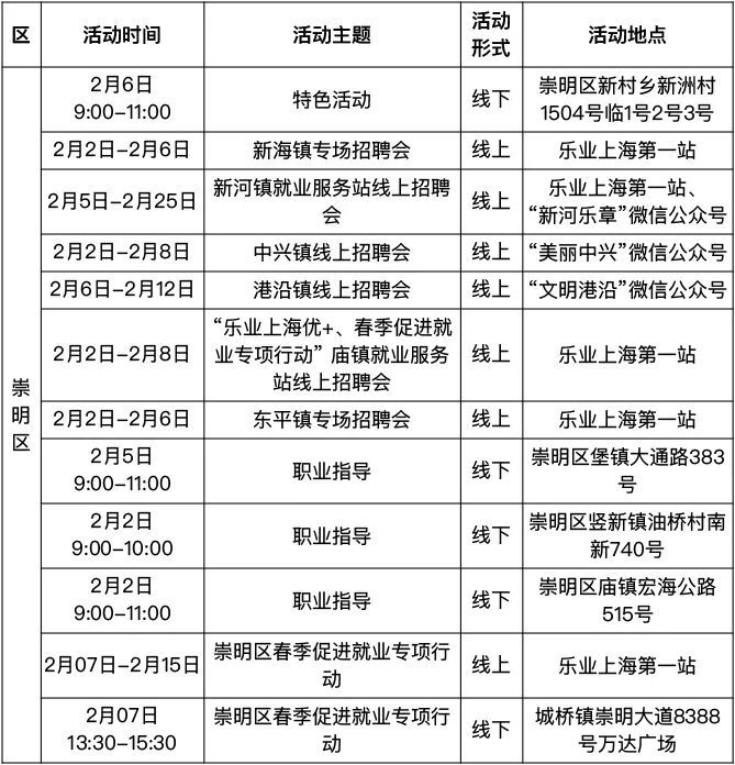 “乐业上海优+”活动排片表