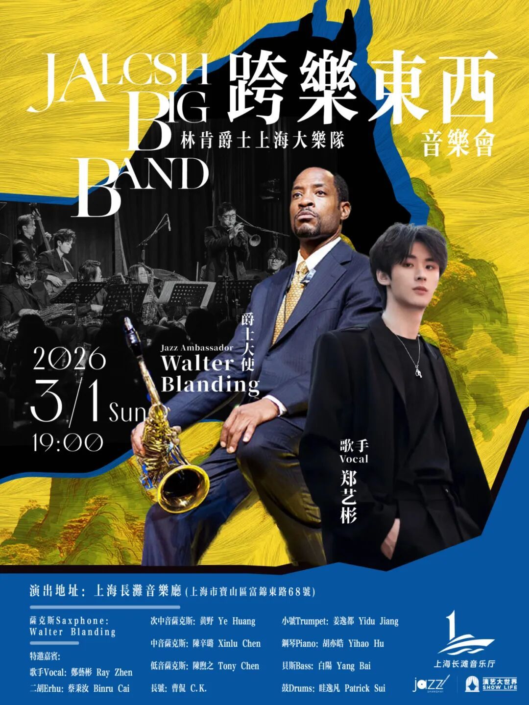 丙午新春,上海长滩音乐厅携手林肯爵士乐上海中心邀您一同遨游哈利·波特奇幻魔法世界,以爵士精神融合东方名曲,奏响新春华章。 1 《哈利·波特魔法爵士音乐会》 2026年2月22日 19:00 魔法与爵士的新春邂逅 14首《哈利·波特》系列经典原声经专属改编,在保留约翰·威廉姆斯原作内核的同时注入新春喜庆与爵士质感,致敬永不落幕的魔法情怀。 2 《“跨乐东西”音乐会》 2026年3月1日 19:00 中西融合的新春华章 国际知名萨克斯演奏家Walter Blanding携手人气演员、歌手郑艺彬共同演绎东方经典名曲,完美诠释“爵士+音乐剧+民乐”的跨界融合魅力。 NEW YEAR -
