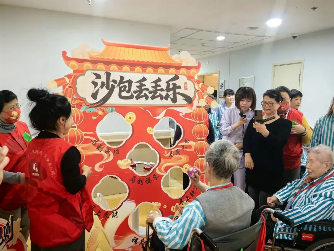 除了购物,敲金蛋、沙包投投乐等简单有趣的小游戏也让老人们玩得不亦乐乎,还收获了许多小礼物。爱心单位豫园万丽大酒店还为老人们送来了超大的水果蛋糕,上面印着红红火火的小马图案,祝贺老人们马年快乐。老人们品尝着甜美的蛋糕,一位老人开心地说:“快过年了,这个蛋糕也很甜的,心里也很甜的。今天很开心的。马年,希望身体慢慢好起来。”