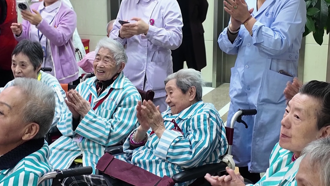 “小燕子,穿花衣,年年春天到这里……”熟悉的旋律响起,医院走廊瞬间变身热闹的演唱会现场。许多老人尽管视力渐弱、手脚不便,但那熟悉的旋律就像刻在骨子里的记忆,他们情不自禁地跟着哼唱,还打起了节拍。老人们开心得如同孩子一般,一旁陪伴的医护人员也被这份欢乐感染,跟着手舞足蹈起来。