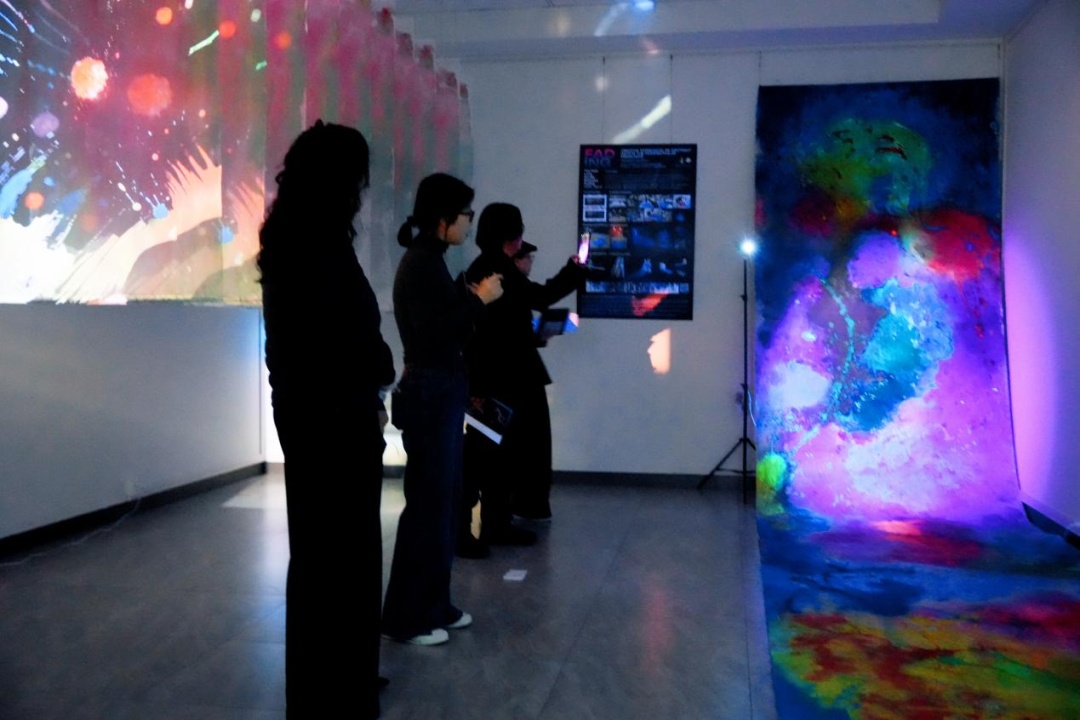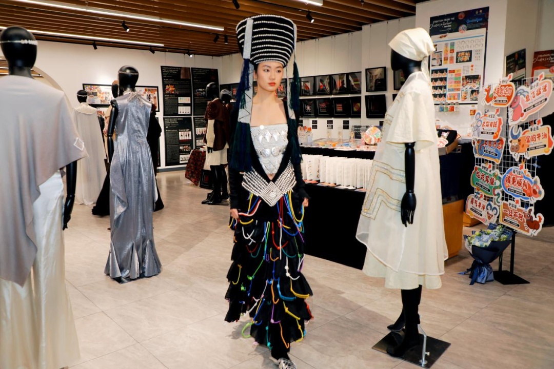 展览现场,传统纺织服饰中的经典图案与纹样被赋予全新表达:呼应二十四节气的提花面料、设计考究的成衣展示、跨界融合的文创产品……服装与艺术设计学院的师生通过传统绘画、服装设计、数字媒体艺术、交互装置及动态走秀等复合媒介,系统解构并生动重现了非遗的文化基因,生动诠释了非遗如何有机衔接现代设计理念、前沿科技手段与当代市场需求,在全新的美学与科技语境中,重新激活其跨越时代的文化生命力。
