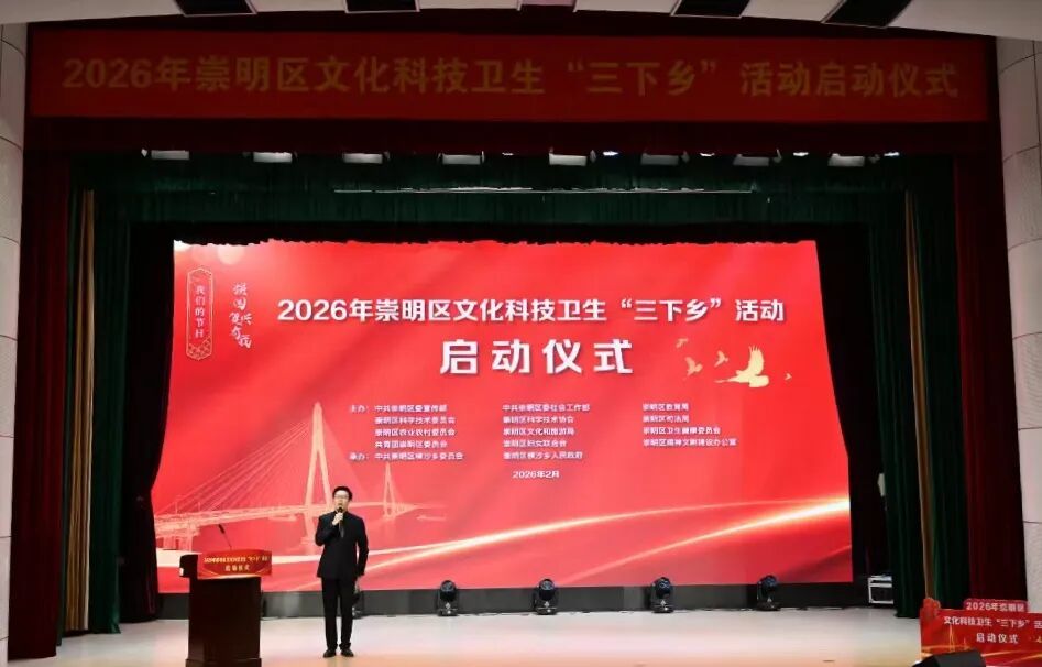 近日,2026年崇明区文化科技卫生“三下乡”活动启动仪式在横沙乡社区文化活动中心举行,将便民服务与新春祝福送到基层群众身边。