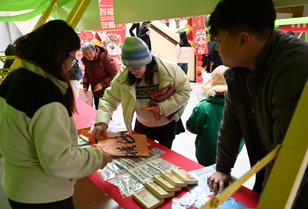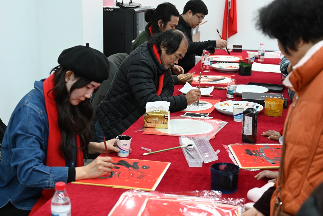 专家义诊和送春联等服务点位前也排起了长队。医护人员细致问诊、认真叮嘱;书法家、画家挥毫泼墨,为群众书写春联福字,营造浓厚节日氛围。