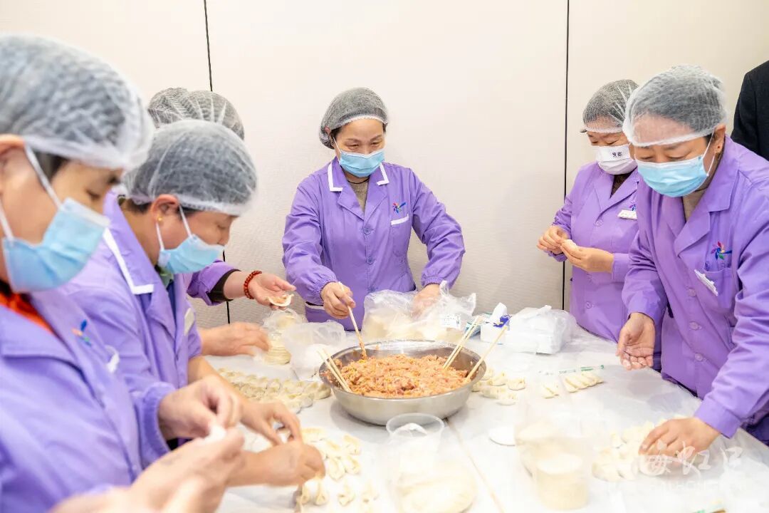 像戈红一样假期留守上海的护理员不少,有了新家,她们在上海也感受到了浓浓的年味和团圆的仪式感。当天,在公共区域,护理员们聚在一起包饺子、写福字、贴春联,笑意洋溢在脸上。