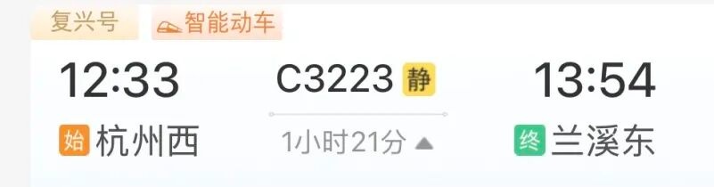 杭州出发,乘坐C3223/2次列车,1小时19分即可到达兰溪东站。