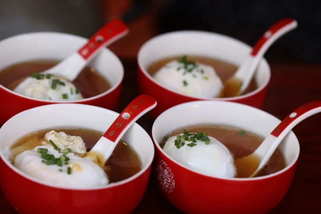 兰溪肉沉子,蛋黄包裹精调肉馅,巧手反复嵌入,文火慢煮成形。旧俗中,这是丈母娘款待女婿的认可之味。入口嫩滑,蛋与肉鲜香交融,暖胃更暖心。