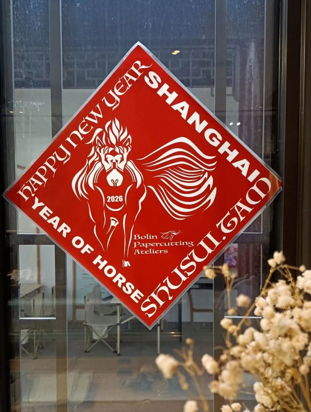 这款海派非遗剪纸用流畅利落的线条勾勒出飘逸灵动的骏马。还设计融入了“HAPPY NEW YEAR”“SHANGHAI”等字样,兼具传统韵味与现代设计感。借“马”的经典文化意象,传递2026马年“龙马精神、马到成功”的新春祝福。