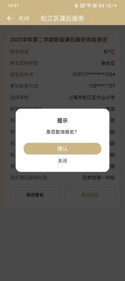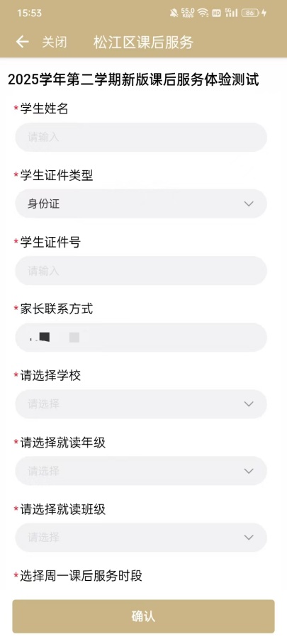 根据自己的实际情况,填写2025年第二学期课后服务报名相关信息,最后点击“确认”,即可完成提交课后服务报名登记。
