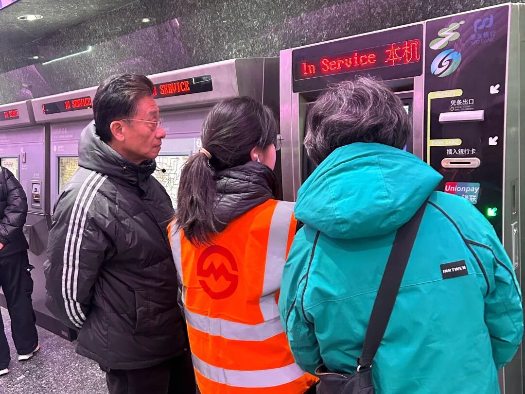 通过与街道联动,车站建立起一支反应快、服务细的志愿队伍。看见拎着行李的一家老小,志愿者会主动上前介绍寄存服务;遇到语言不通的外国游客,中英切换甚至多语支持随时在线;对视障乘客,则开启“手递手”接续护送……站台上,制服与马甲交替忙碌;闸机边,询问与解答温暖流动。