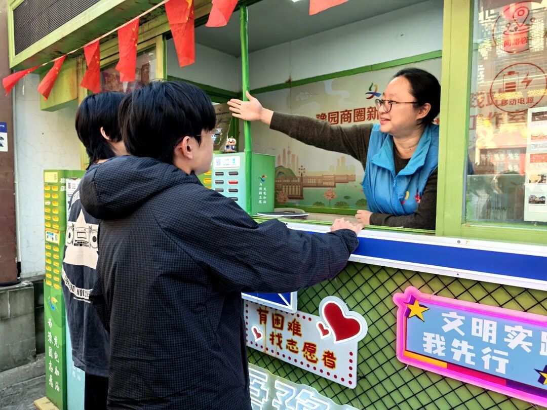 豫园外国游客多,语言常成障碍。这些学生志愿者便成了“即时翻译”——为英国夫妇指路,帮韩国游客找到银行,用流畅的英语缓解了老一辈志愿者的沟通压力。
