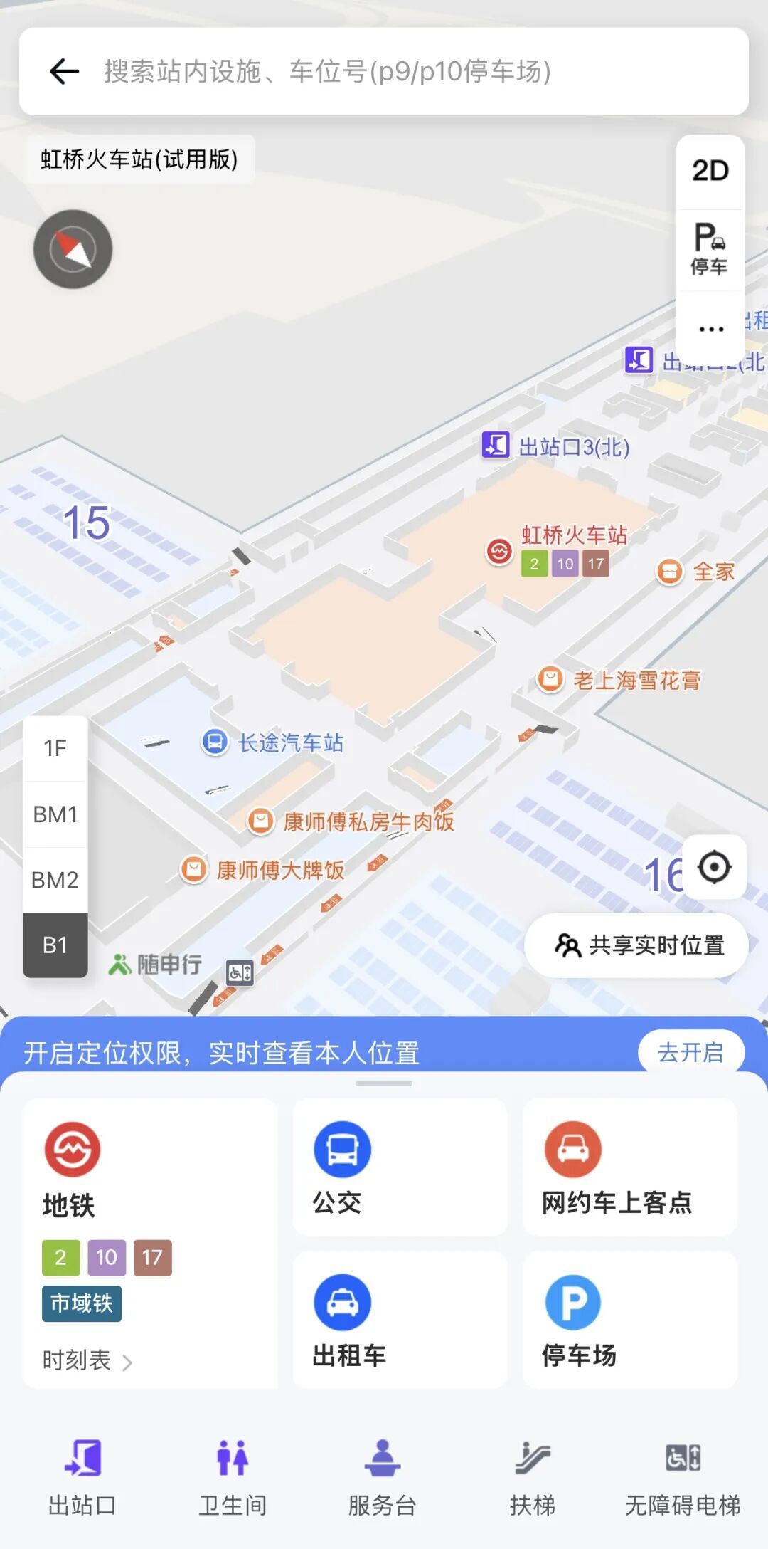 去地铁、公交、打车点:输入目的地(如“地铁2号线”“P9停车场”“网约车上客点”),系统会生成跨楼层最优路线,跟着箭头走即可。