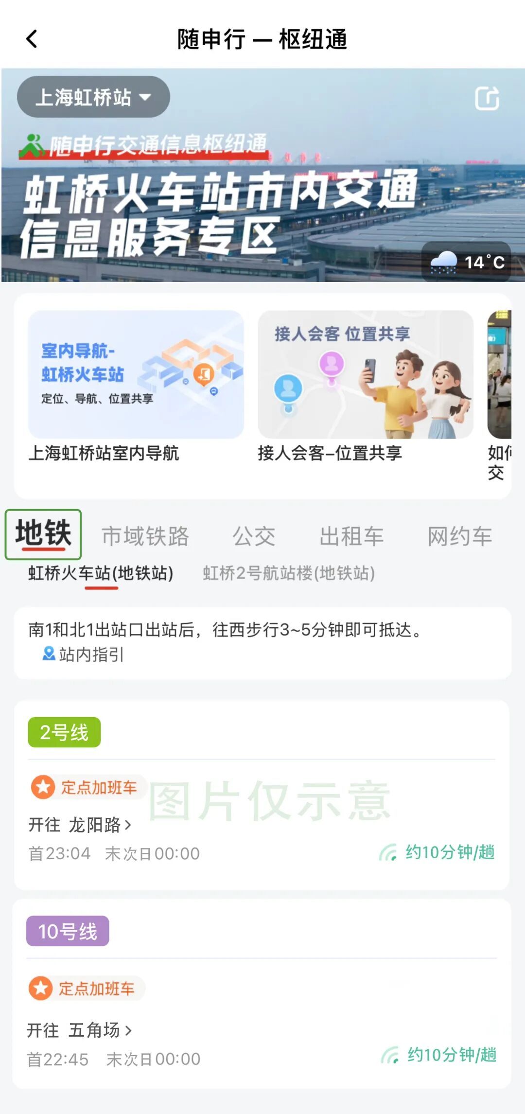 这个春运,上海地铁开行延时运营、多头班车、定点加班车等多重保障。具体安排可查看→延时运营、多头班车、定点加开,上海地铁全力保障2026年“春运”以上信息在“枢纽通”专区内均实时更新。以上海虹桥站为例,进入“地铁”标签页,夜间会自动显示定点加班车运营信息,到站即可选择最近班次。