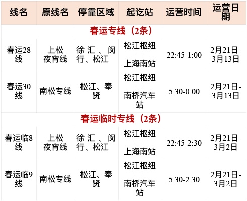 市交通委介绍,为全力做好春运期间地面公交的保障工作,给乘客营造“安全、快捷、有序、舒心”的春运出行环境,本市公交行业开辟了30条春运专线、9条春运临时专线以及4条定制公交线,确保地面公交与机场、火车站、码头、轨交的有效衔接。详见↓