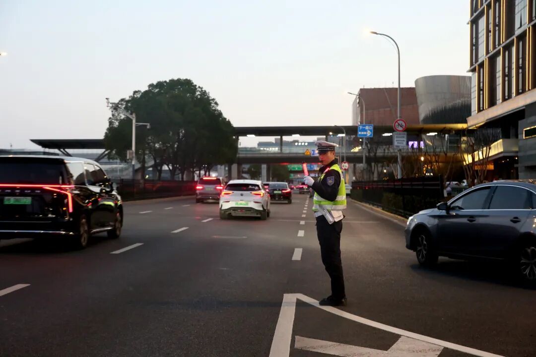 深夜,申虹路高架匝道口依然车流不息,民警的哨音在寒风中清晰可辨。“返程高峰这几天,我们全员在岗,特别是加强夜间关键路段的疏导,确保最后一位旅客也能平安回家。”闵行公安交管支队一大队副大队长龚赟鹤表示。