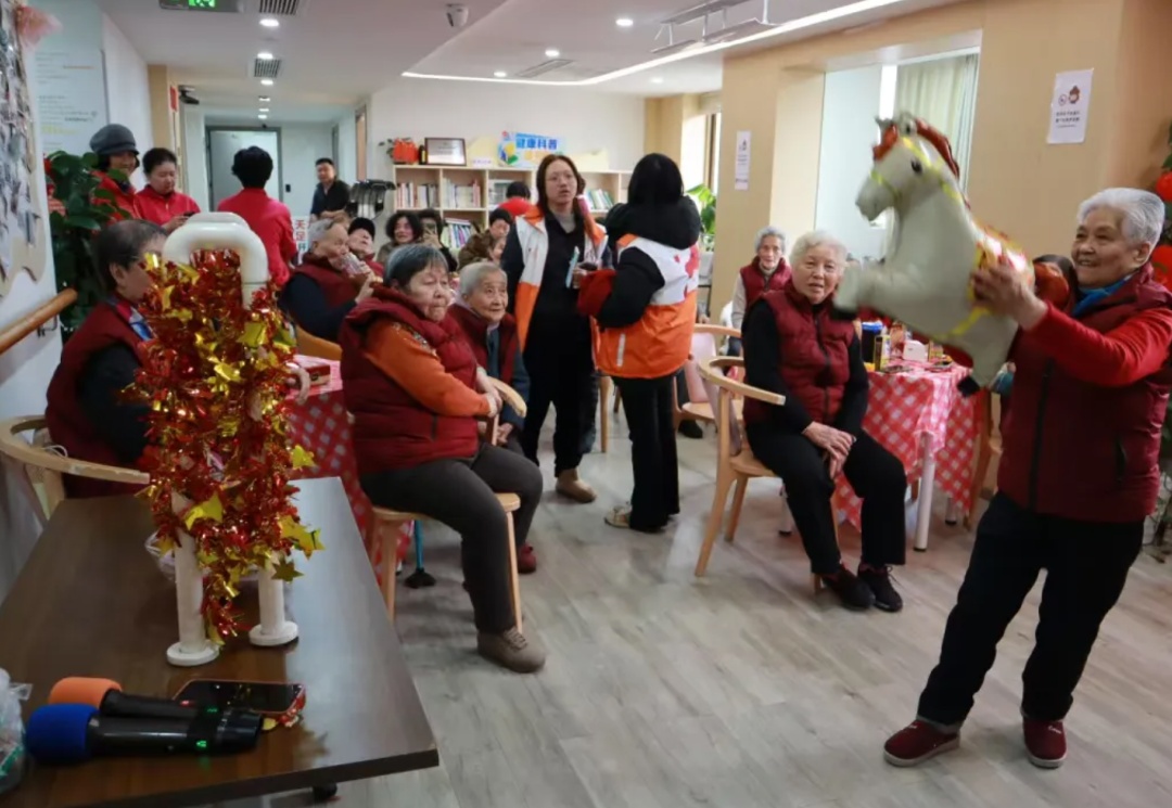 一走进照料中心,红灯笼挂起来,喜庆福字贴满墙,浓浓的年味儿瞬间裹住人。文艺表演一上来就燃了场——志愿者们的功夫扇表演霸气开场,整齐的动作刚柔并济,精气神儿十足,台下掌声一波接一波;经典戏曲选段轮番唱,婉转的调子勾着回忆,老人们跟着旋律轻轻哼,嘴角不自觉上扬;压轴的红歌联唱更是把氛围拉满,《映山红》《歌唱祖国》的旋律一响,全场老人拍手合唱,歌声混着笑声,成了新春里最暖的旋律。