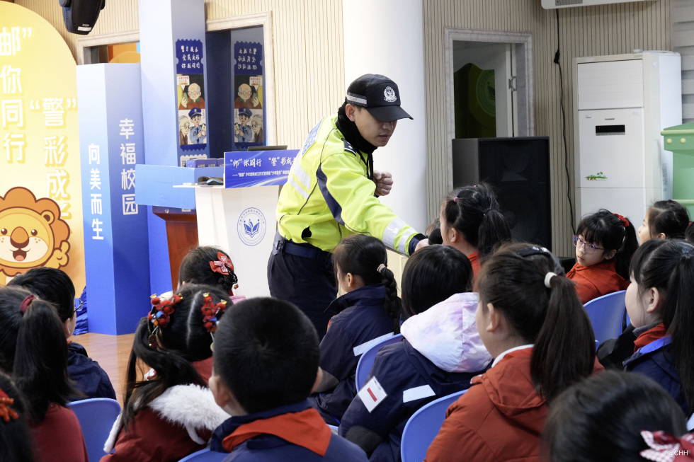 紧接着,浦东交管支队青年民警吴一凡登上讲台。他结合一线交管工作经历,紧扣学生出行特点,用通俗易懂的语言讲解交通规则与出行风险,提醒同学们自觉遵守交通法规,远离道路危险。同时,他积极倡导 “小手拉大手” 安全理念,鼓励孩子们争做家庭交通安全宣传员,带动父母长辈共同提升交通安全意识,让安全出行理念走进千家万户,营造家校社协同共治的良好交通安全氛围。