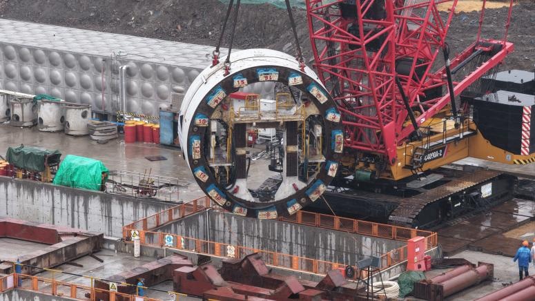 近日,上海轨道交通19号线江杨南路站至泰和路站区间下行线盾构机顺利完成吊装下井。 目前,盾构正在始发井内进行整机调试与安装工作,计划从江杨南路站正式始发掘进,最终抵达泰和路站完成接收。 区间由江杨南路站始发,并行侧穿、斜交下穿18号线长江西路站~江杨南路站区间,过蕰藻浜及两岸码头,沿铁山路前行至泰和路站接收,区间长度约1500米,设两处联络通道。主要风险点有:下穿既有运营地铁线路、下穿侧穿沿线建构筑物桩基、在⑦1-1承压含水层中掘进。