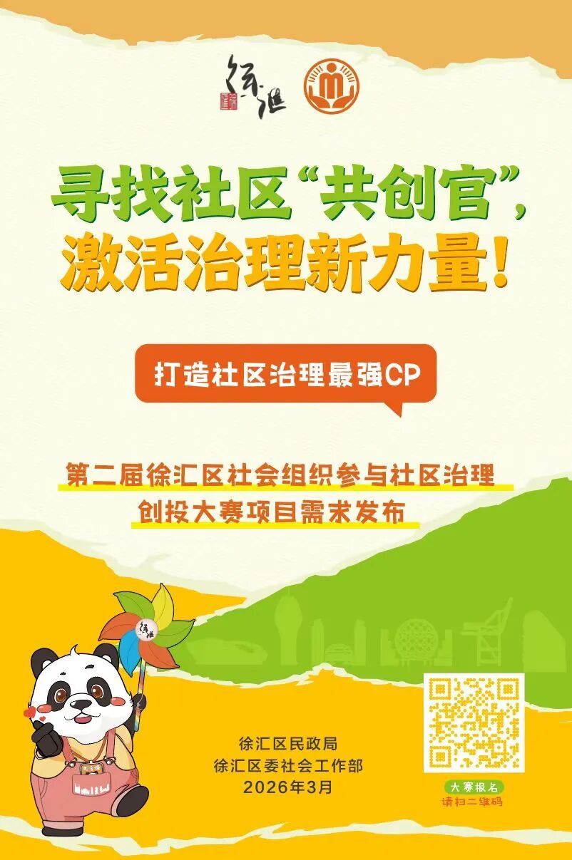 为深化基层治理创新,构建人人参与、人人享有的社会治理共同体,由徐汇区民政局、徐汇区委社会工作部联合主办的第二届徐汇区社会组织参与社区治理创投大赛正式启动!我们坚信,最好的社区解决方案,源于居民的想法,成于专业的赋能。