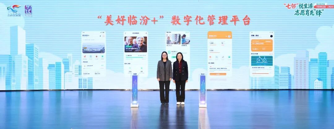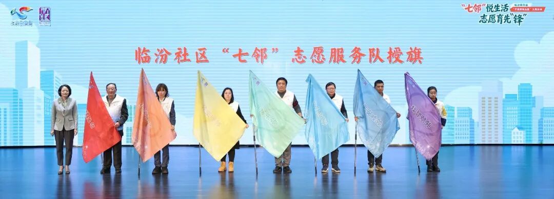 志愿服务力量在社区建设和发展中发挥着重要作用。活动现场,临汾社区“七邻”志愿服务团队全景图发布,数字助理“临小助”介绍了七类志愿服务团队概况。徐静为“七邻”志愿服务队代表授旗。