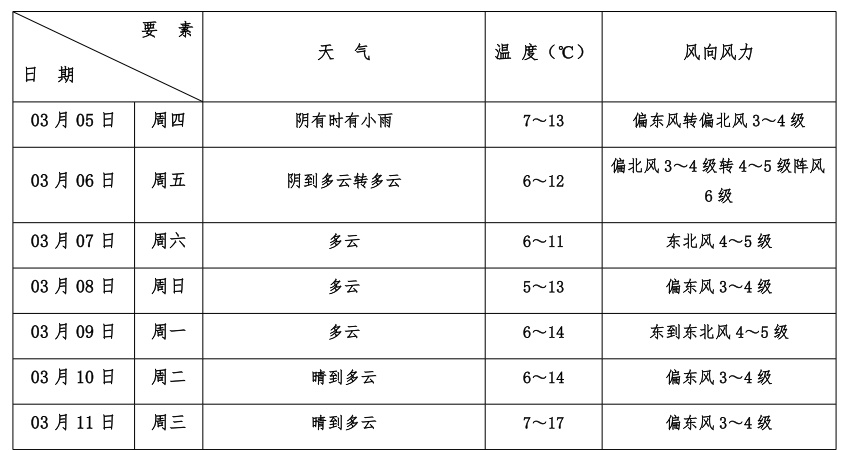 据最新气象资料分析:受短波槽影响,本区今天有时有小雨,夜里雨渐止;明天受东路冷空气扩散影响,风力有所增大;7日起,高空转受西北气流控制,以多云天气为主,气温逐渐回升。 今天天空阴沉,白天升温并不明显,闵行7~13℃,湿度大,体感仍偏湿冷。 明日天气 今天半夜以前申城阴有时有小雨,半夜雨止转阴到多云,明天多云到阴。受冷空气扩散影响,明天中午起偏北风增大至4~5级阵风6级,相对湿度85%~50%,气温在6~12℃,体感偏冷,“春捂”不可少。
