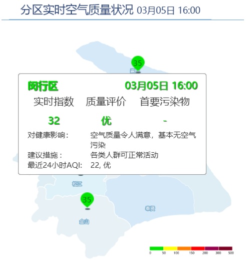 闵行区AQI为32,良。