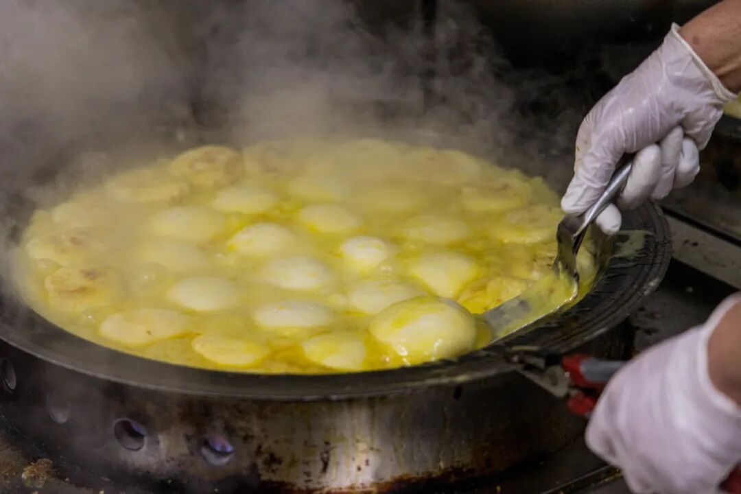 小店用传统的铁锅煎烤