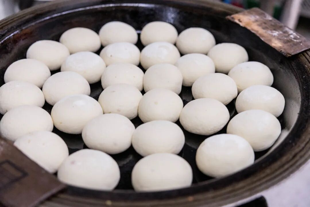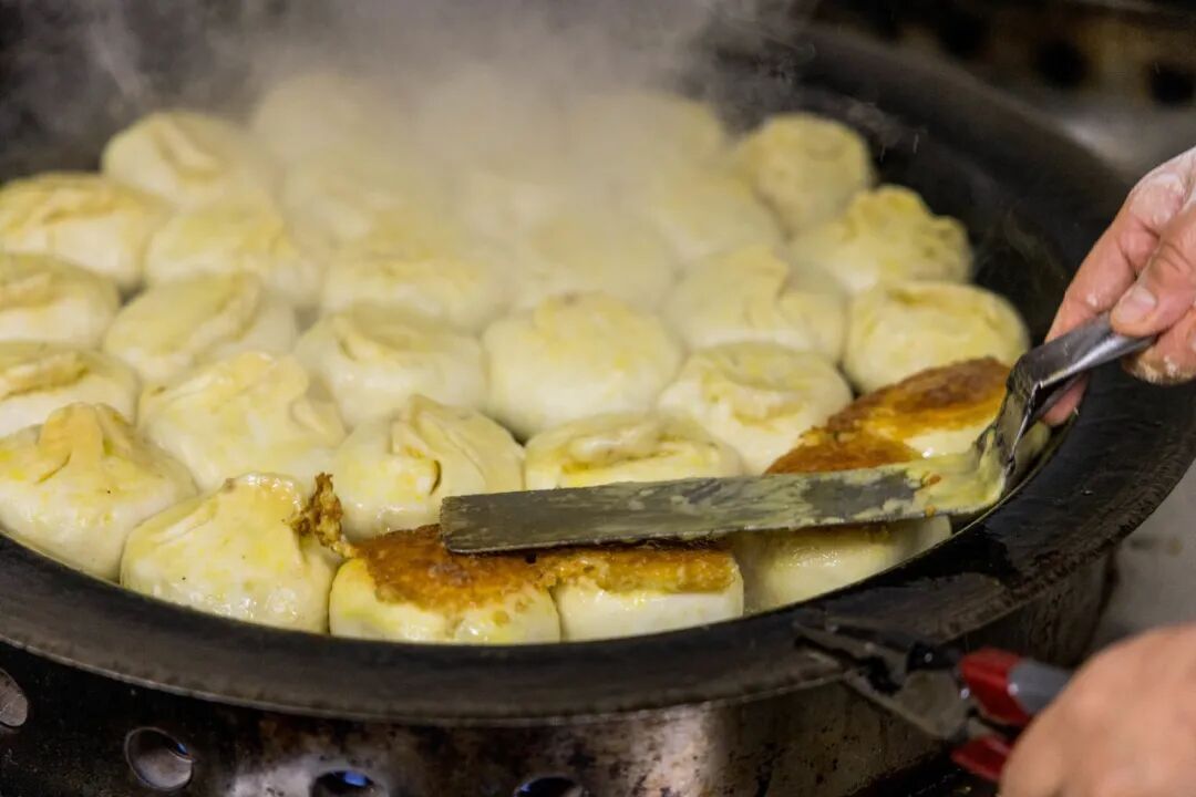 刚出炉的煎包带有一层