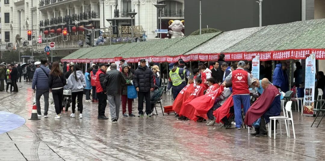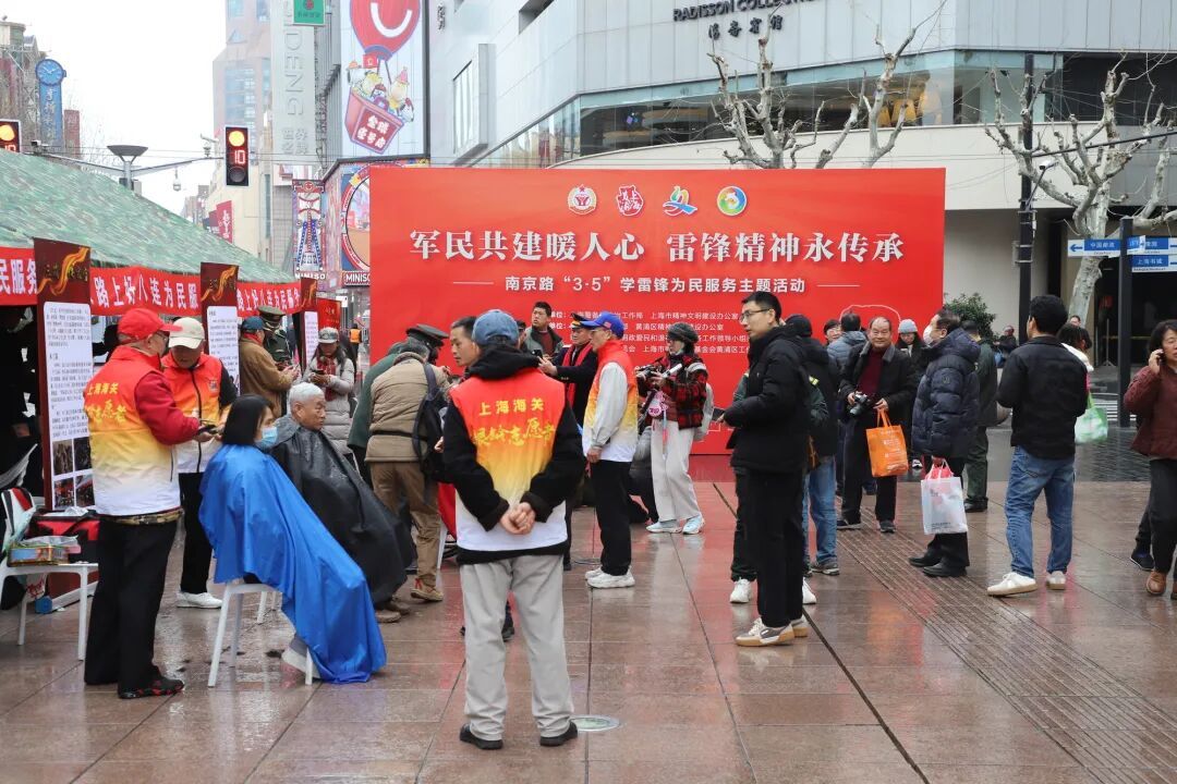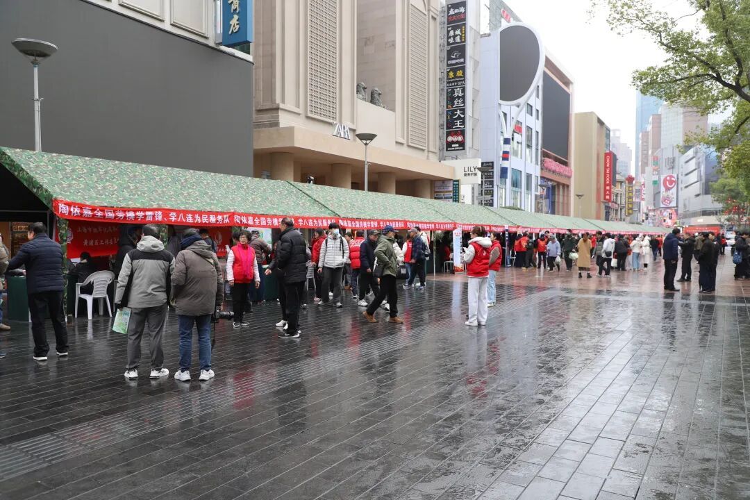 3月5日清晨,春雨如丝,南京路步行街上人头济济,学雷锋为民服务活动现场热气腾腾。