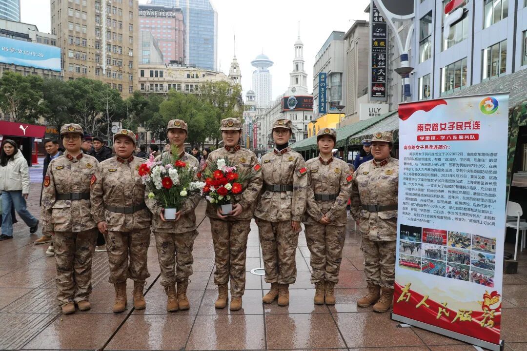 在修伞、理发、量血压等传统摊位间,一阵花香悄然弥漫。那是南京路女子民兵连的插花点——这是她们在传承、弘扬雷锋精神、“好八连”精神的过程中,结合市民服务需求摸索出的创新项目。