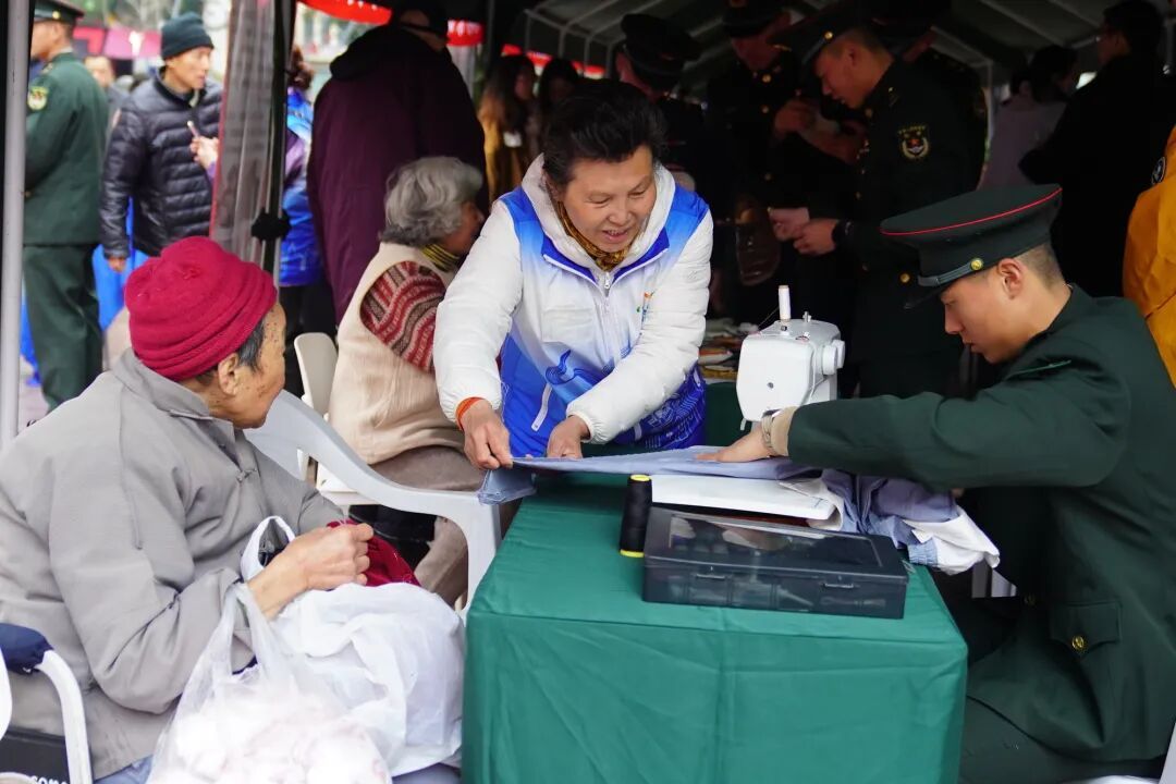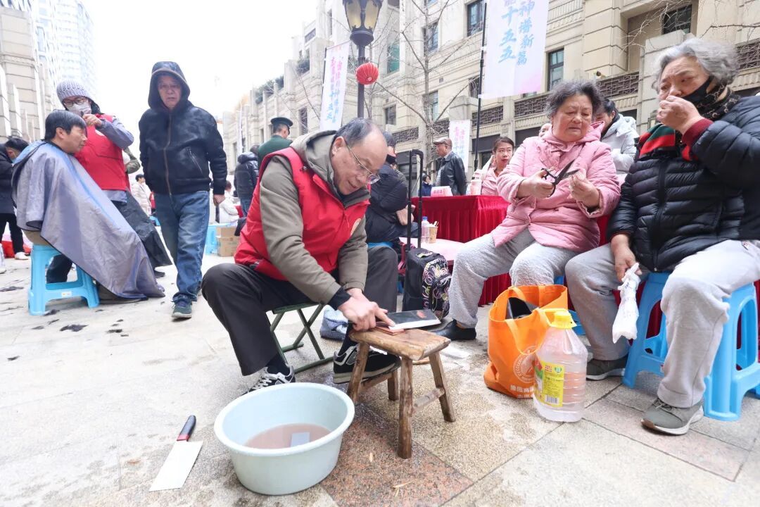 同步开展的志愿服务集市人气高涨:理发、磨刀、修补等便民服务贴心周到;健康检测、反诈宣传等科普服务守护居民健康与财产安全,实实在在把温暖送到居民家门口。