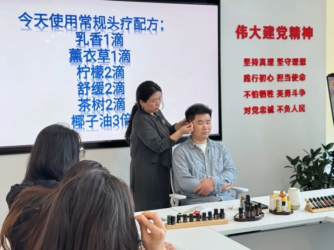 此外,中医精油经络头疗沙龙里,专业芳疗师结合中医理论讲解精油功效与使用技巧,通过头部经络按摩搭配定制精油配方,帮助白领缓解肩颈疲惫、释放心理压力,在淡淡精油香气中调整状态,以更轻盈的姿态回归职场。
