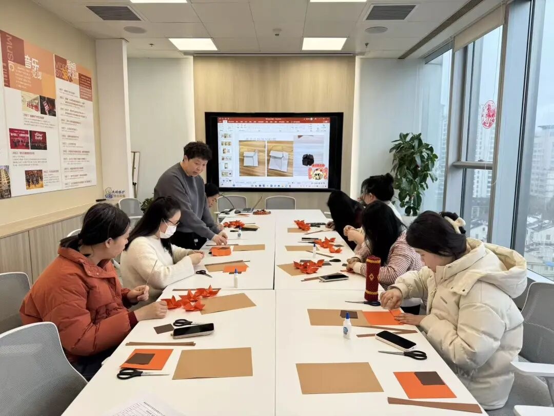 柿柿如意・创意折纸手作活动中,老师将“柿柿如意”吉祥寓意与折纸技巧结合,白领们在折叠、塑形的过程中暂时脱离快节奏工作,在指尖创作中感受新春美好,收获心灵平静。