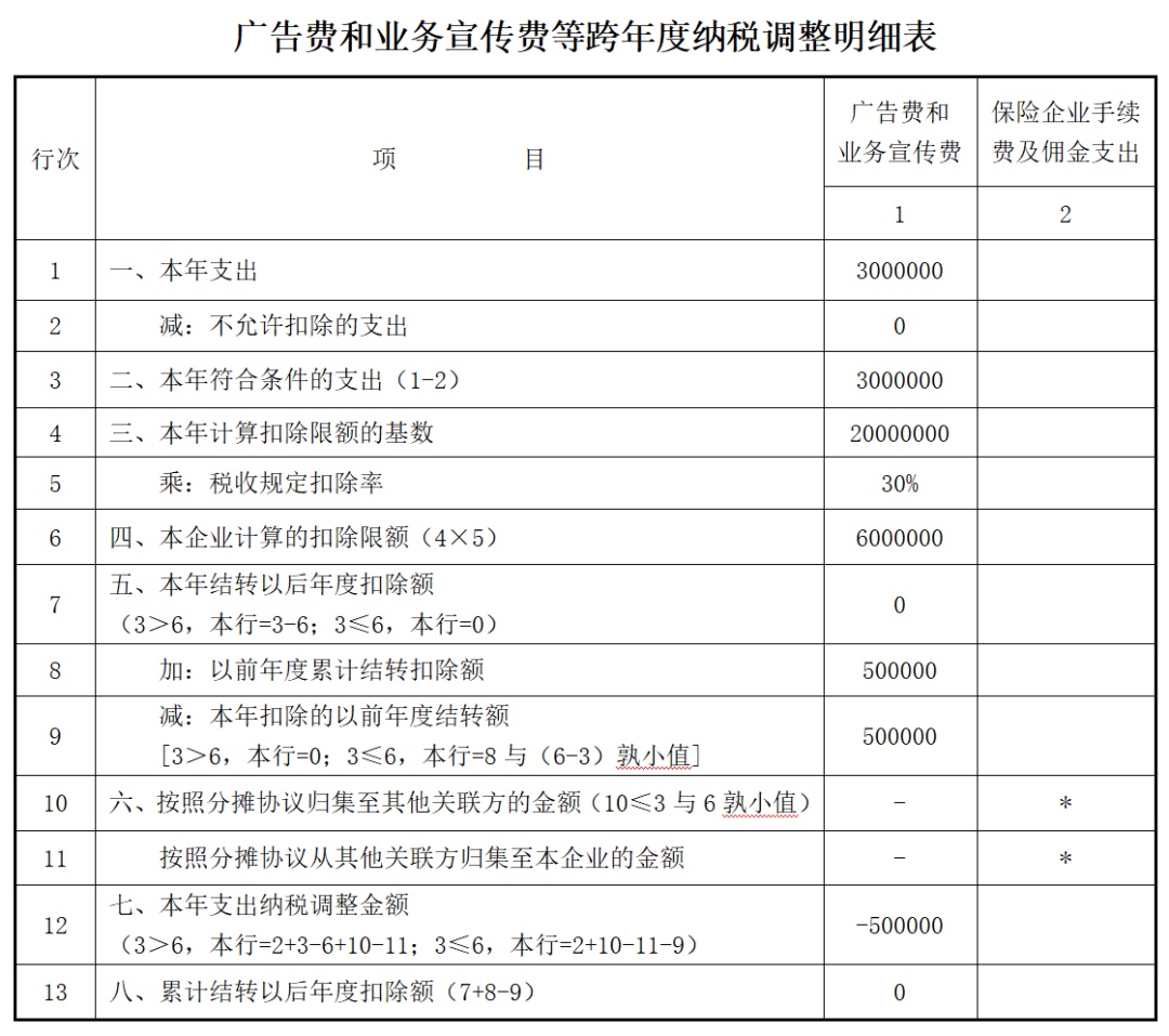 当年实际发生广告费和业务宣传费:300万元