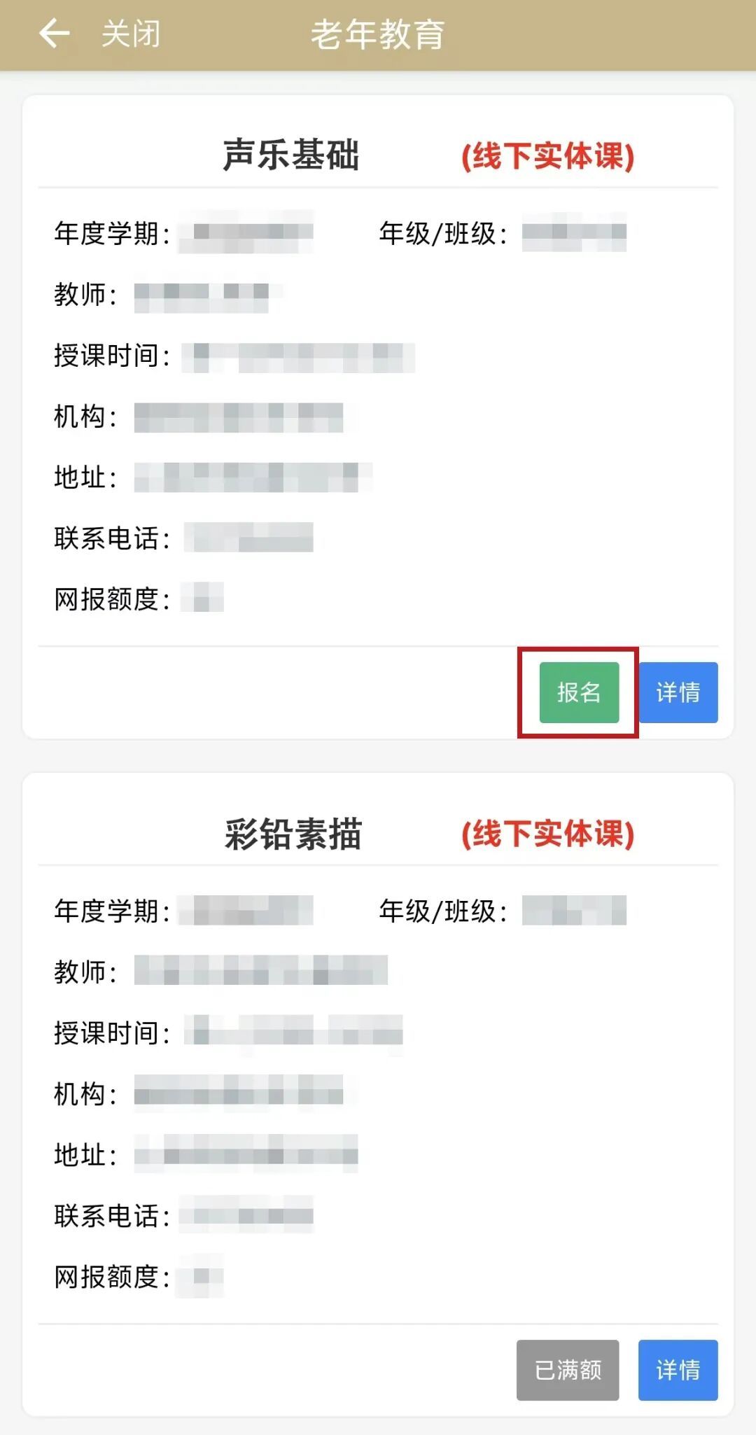 点击“课程报名”按钮: