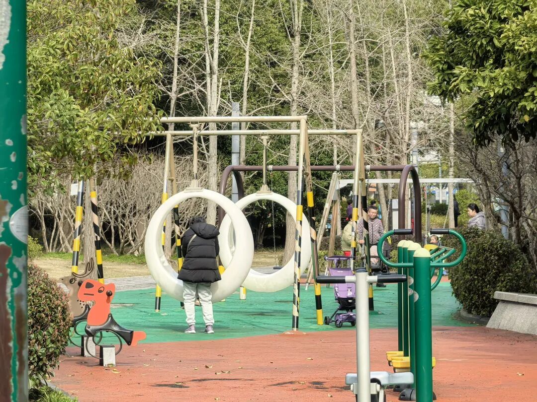 上午,天空湛蓝,阳光和煦,气温舒适宜人。金山好人公园内,阳光透过枝叶洒下斑驳光影,树枝抽出嫩绿的新芽,在微风中轻轻舒展,空气里带着草木清新的气息。不少市民趁着晴好天气,在公园里溜娃、锻炼。