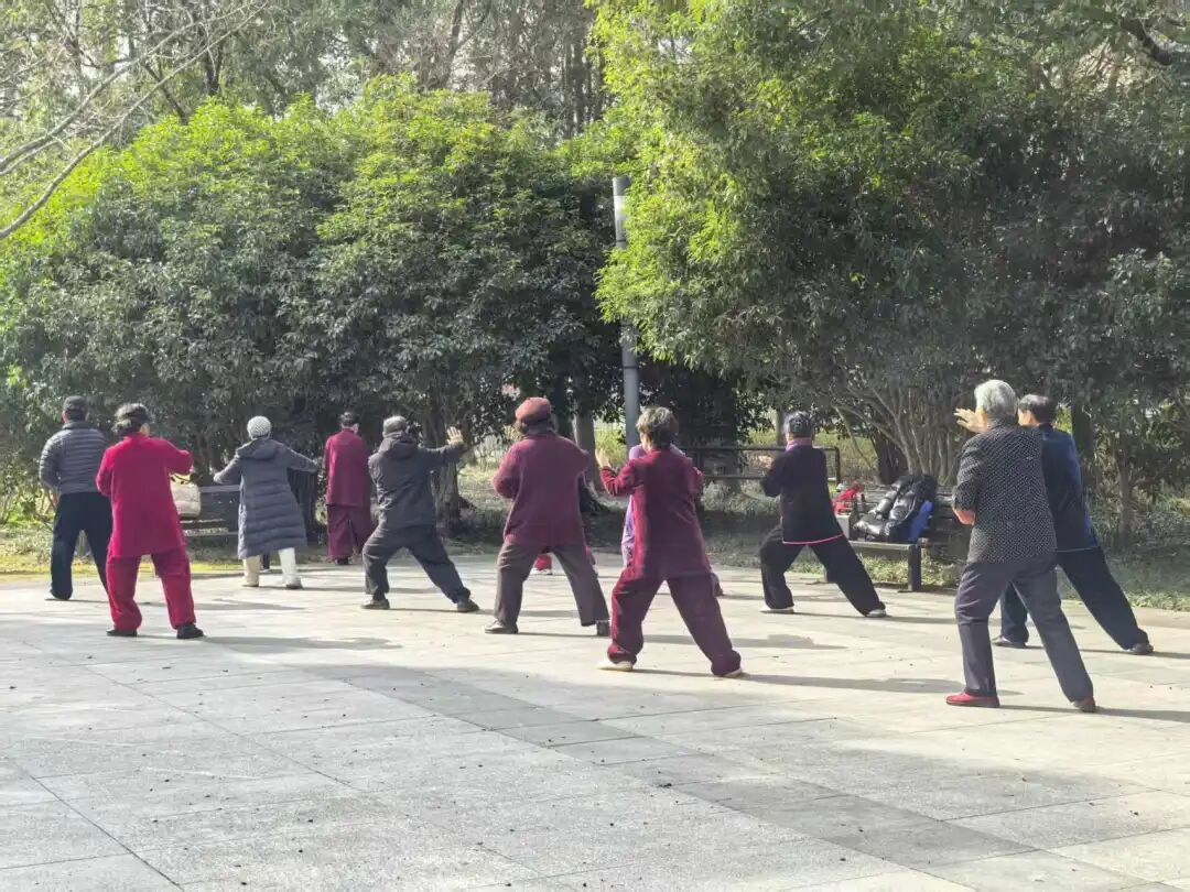 市民张女士表示:“连续几天都是阴雨天,不方便锻炼。今天天晴了,也暖和了,出来打打太极,舒展舒展筋骨,心情大好。”