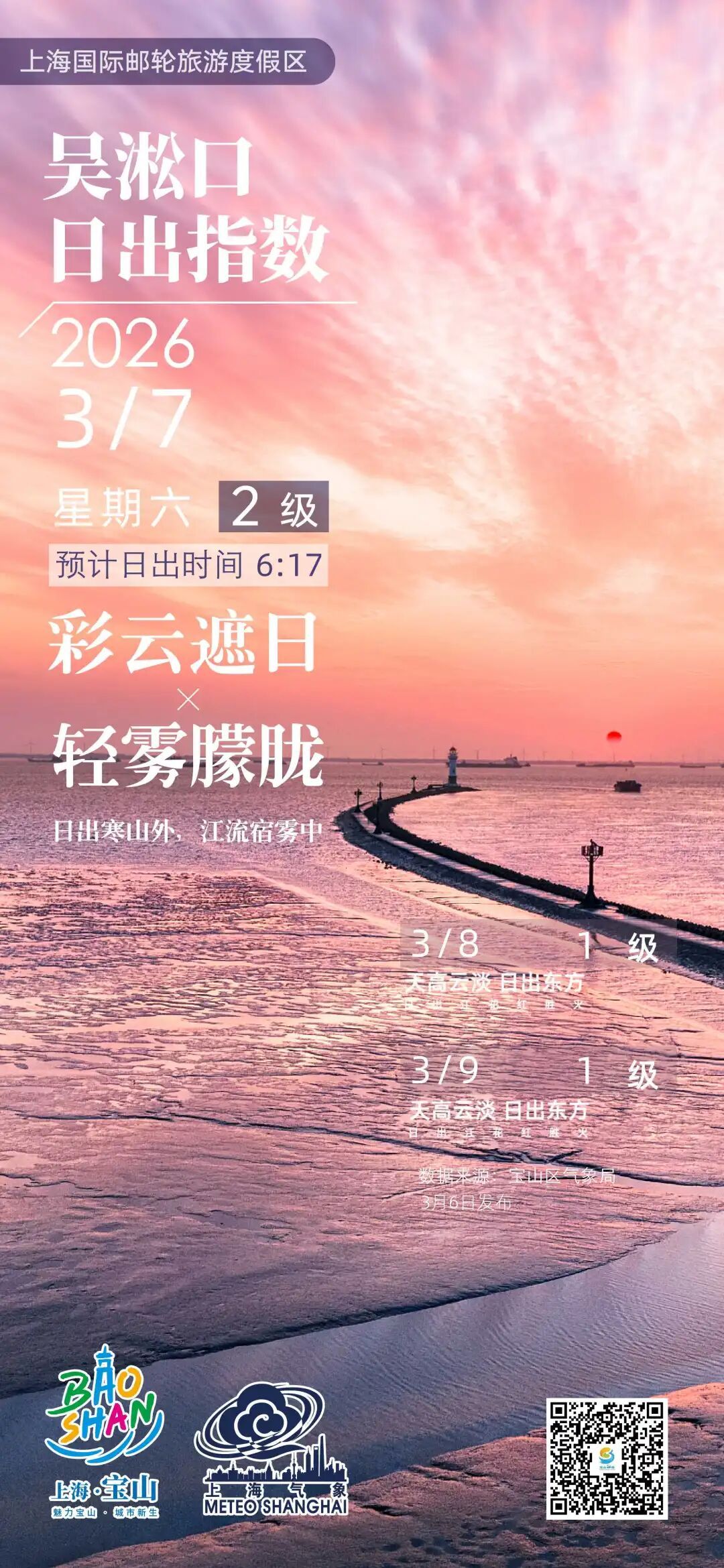 【吴淞口日出指数】3月7日2级 彩云遮日×轻雾朦胧