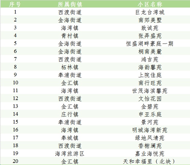2025年奉贤区“宜居社区 美好家园”建设名单